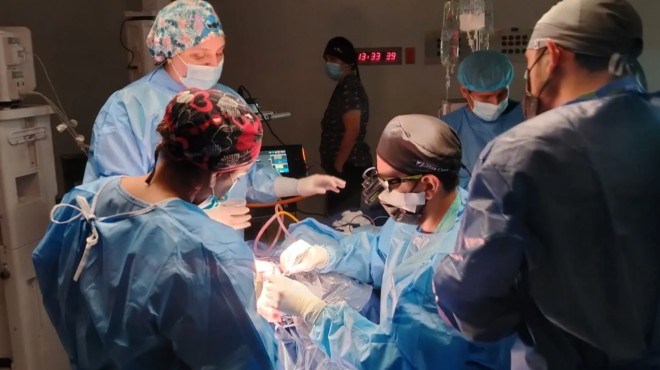 Profesionales utilizando la consola Da Vinci. |