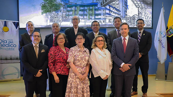 Emilio Pacheco, gerente de la línea Intuitive en ALEM, y Diana Farinango, gerente general del Hospital del Holding |