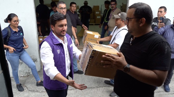 El ministro de Salud, Jimmy Martin, se suma a la entrega de productos. |