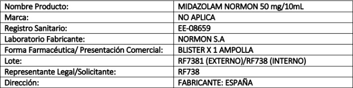 La Agencia Nacional de Regulación, Control y Vigilancia Sanitaria (ARCSA) ha emitido una alerta sobre el medicamento MIDAZOLAM NORMON 50 mg/10ml con Registro Sanitario EE-08659 (solución inyectable), ya